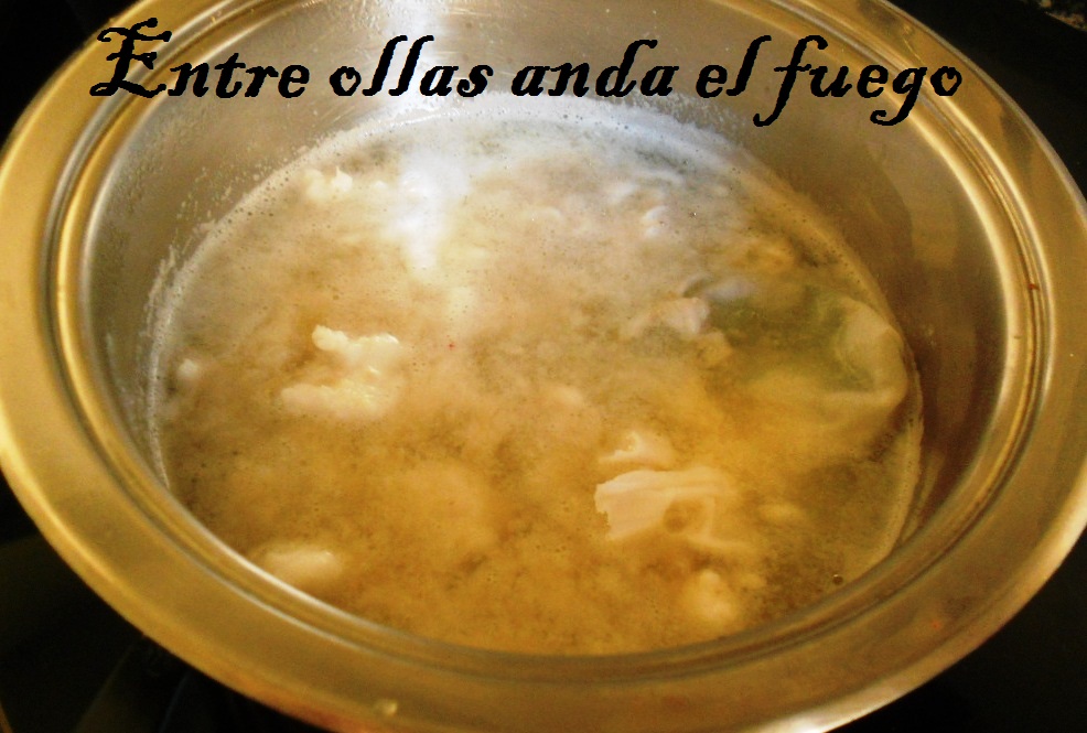 | Cociendo el rape y las verduras para hacer el fumet de pescado |